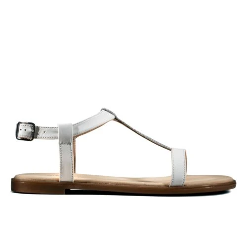 Perfect for taking on holiday, these flat T-bar sandals offer a minimalist look thanks to the strappy upper and simple buckle fastening. Featuring an ankle strap for a secure fit, a grippy rubber sole and soft textile footbed.