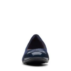 Classic, clean lines, capped with a glossy patent leather toe, gives this Clarks collection slip-on shoe distinctive style. The juliet monte features soft synthetic linings, a cushion soft with ortholite molded footbed, and flexible rubber outsoles. Looks sophisticated with workwear and adds a chic touch to jeans.