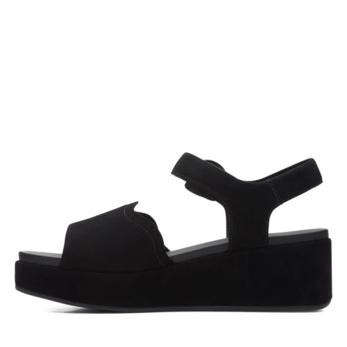 Kimmei Way is a contemporary two-part sandal that feels fresh and ultra-wearable. The upper in premium black suede sits on a wedge heel with just the right amount of elevation.