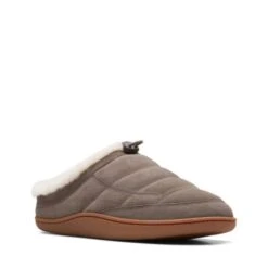 A padded upper and adjustable toggle give on-trend slipper Pilton Mule a modern indoor/outdoor aesthetic. Premium stone suede teams with a fluffy lining and durable crepe-effect rubber sole for warmth and great grip ? ideal for confident and cosy steps around the house or when popping out. Fits small, recommended to size up.