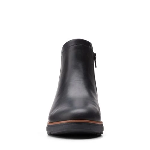 A simply designed, super-wearable women’s ankle boot, warmlined, so perfect for everyday errands on colder days. The black leather upper is beautifully cut and stitched with Clarks crafted attention to detail and fastens with an inside zip.
