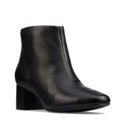With a wearable 5.5cm heel, Sheer55 Zip is an effortless ankle boot with back zip for easy on/off and sleek lines. In premium black leather and an on-trend square toe, it is a contemporary classic moving from office to weekend.