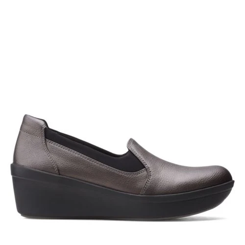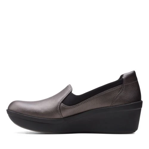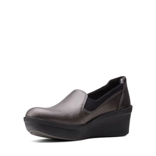 This cloud steppers wedge pump combines a polished, professional silhouette with your favorite comfort features. Its smooth textile uppers give versatility to this shoe, making it suitable for work. Inside, a removable Ortholite foot bed absorbs impact and wicks moisture to promote serious support for all day wear- even barefoot.